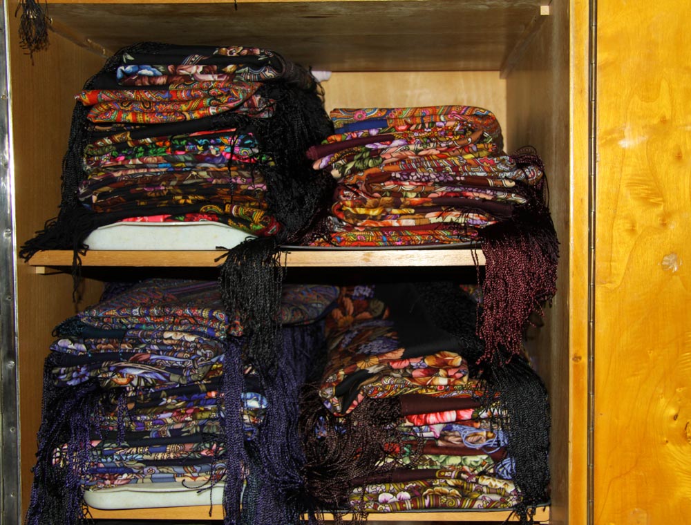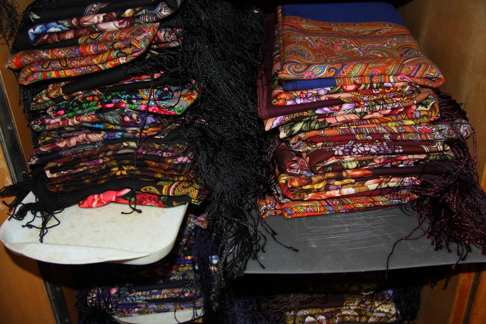Первый снимок - вид на полках. Второй - специально отодвинула платки, чтобы показать, на чем они лежат.
