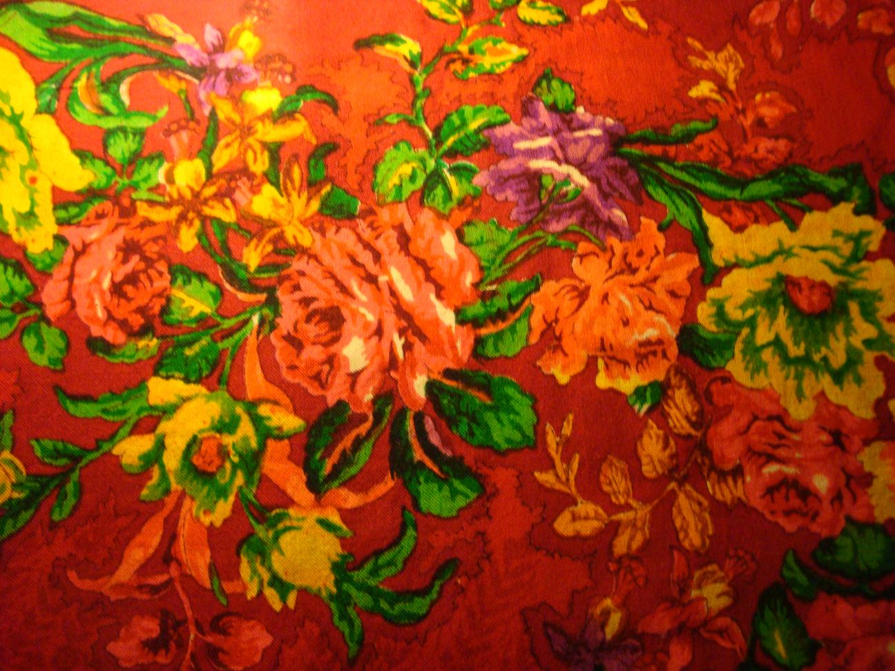Конечно, Лидия Шаховская.Набойка ручная, очень живописная.Середина заполнена рисунком на пол-тона темнее, чем фон.Поначалу думалось, что как и в скатерти "Урожайная", это будут просто пятнышки, но оказалось, что там-то и скрыт главный смысл.При рассмотрении проявились колосья пшеницы, гроздья винограда с листиками, какие-то ягодки и стилизованная надпись ВСХВ.По-моему, в 1954 году,после войны, открвлась Всесоюзная Сельскохозяйственная Выставка.Видимо, именно к этому событию был создан сей шедевр.Ткань очень мякгая и тонкая, удивительно отличается от современной.(В лучшую сторону).