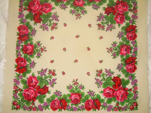 Второй платочек приблизительно того же времени выпуска,без этикетки,и кто художник- я не знаю,но розы просто очаровали!