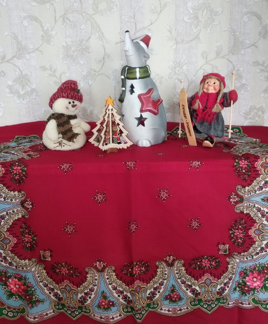 И я в последнюю минутку, со своим уже праздничным настроением - елочка с любимыми игрушками из разных материалов, собираем каждый год что-то необычное... И сегодня со мной самая волшебная моя новогодняя шаль - День Победы-10, она сама как нарядная елочка с яркими игрушками!