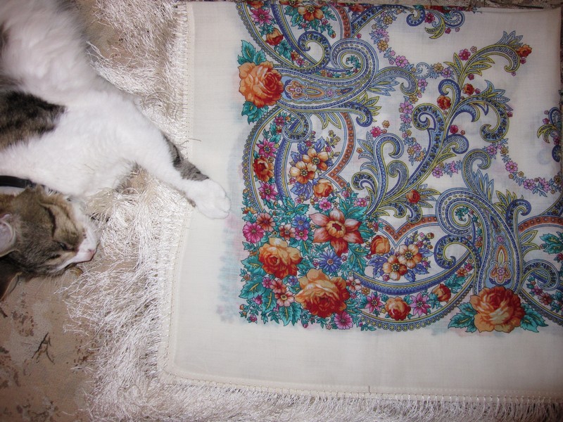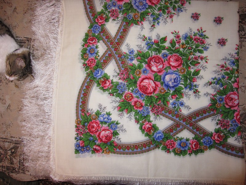 Белопольных платков ППМ выпускает не очень много, но они есть всех размеров. Те, которые мне особенно понравились - я купила и показываю.