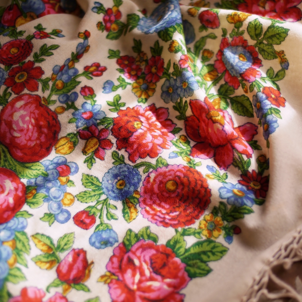 Сначала немного деталей этой чуднОй шали. "Влажные", как прозвучало у MmeN, тут не только цветы, но и вишни, виноградины, гранаты... Любуюсь этим немного наивным рисунком не смотря ни на что!