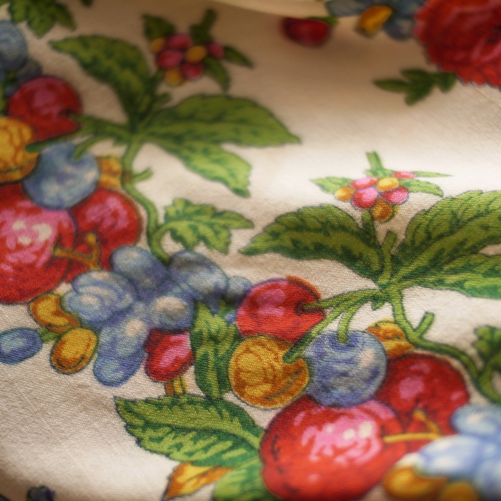 Но я сегодня с еще одной белопольной шалью. Она более легкомысленная. Летняя. Очень. И легкая. Райскосадовская. Впервые вижу такое обилие фруктов (кажется и фрукты-то впервые вижу, ягодки были, очень их люблю!)