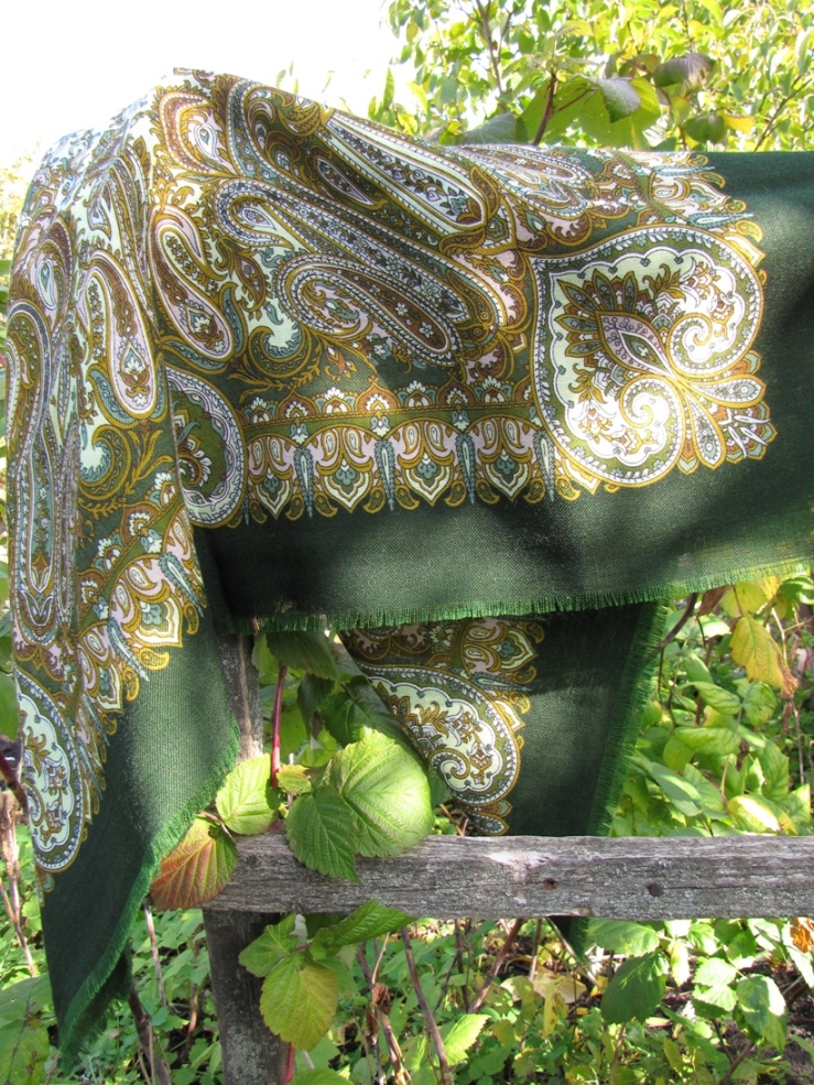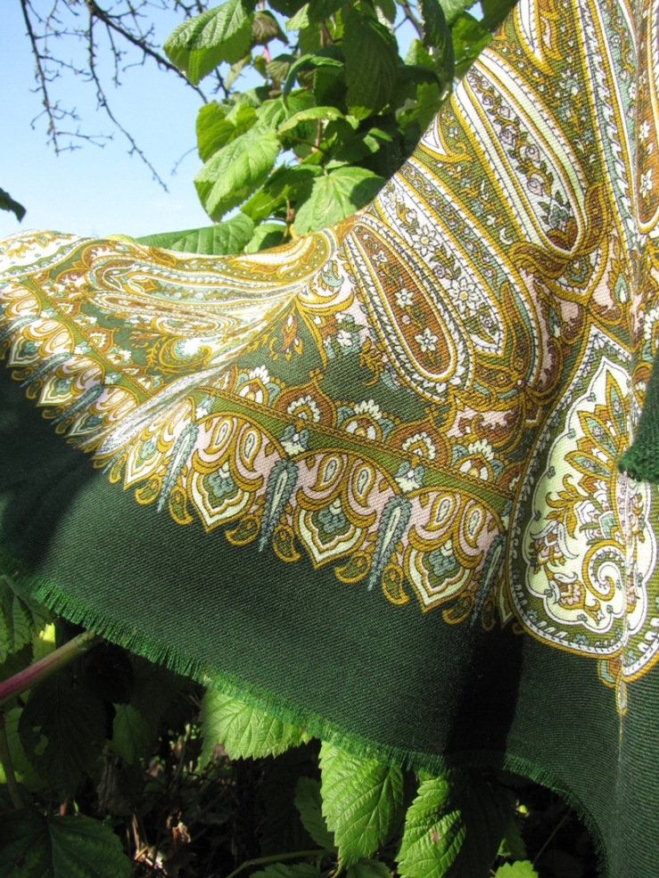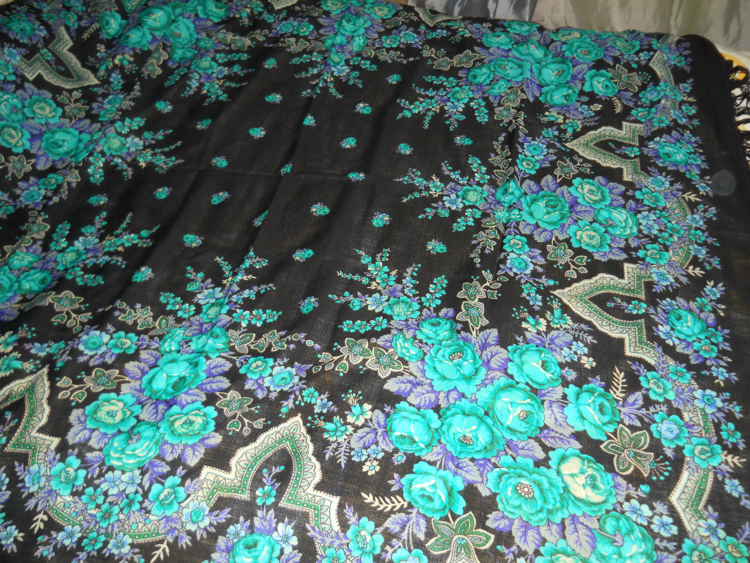 Mlava – красивый платок, но мне больше нравится с синим грунтом. Может потому, что он мне больше идет? А на фото хорошо видно, что грунт черный!