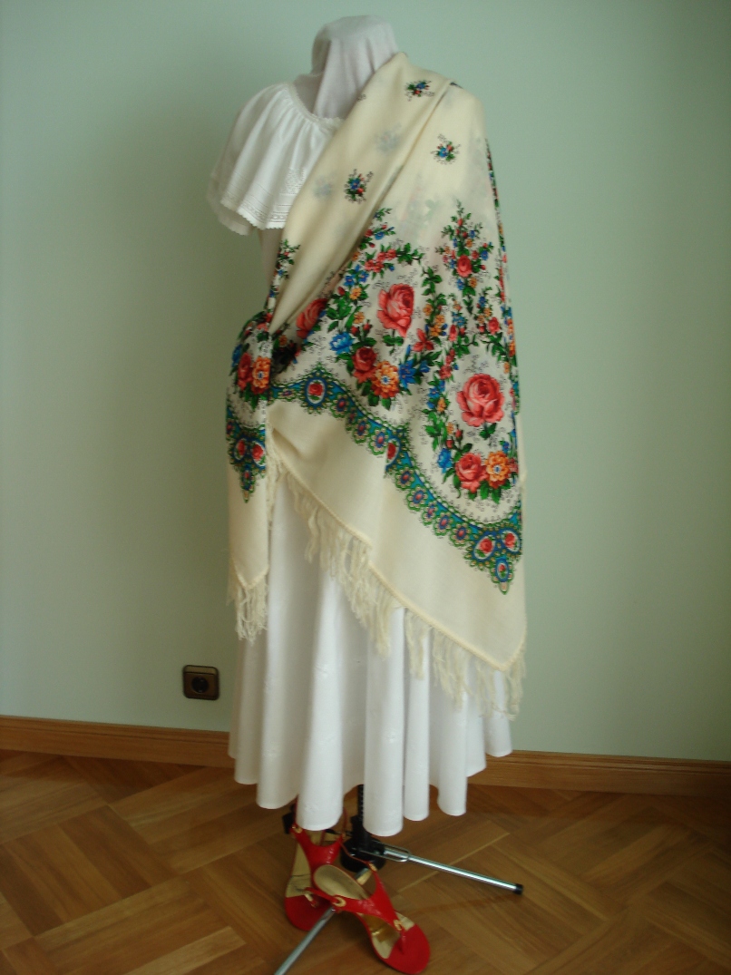 Мне очень нравится белопольная "Зима". Пока этот платок лежит в пакете, т. к. не знаю с чем и как буду его носить.