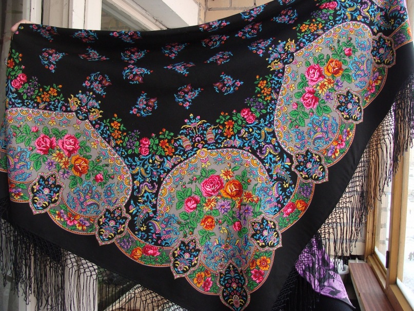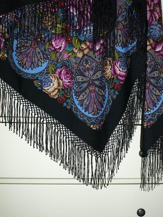 И потом, с укороченными кистями, мне гораздо больше нравится, как платок выглядит при драпировке - рисунок лучше виден!
