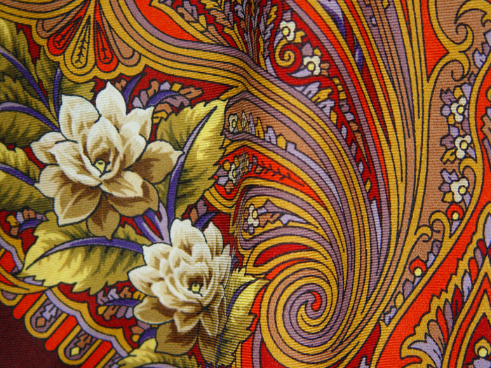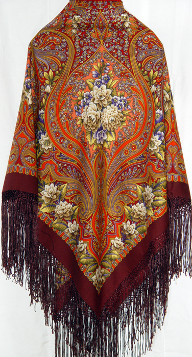 Из распродажи Восточный орнамент, рисунок: 1004-18. Красивый платок, нарядный, очень богатая кайма. А на сайте ничего этого не видно.