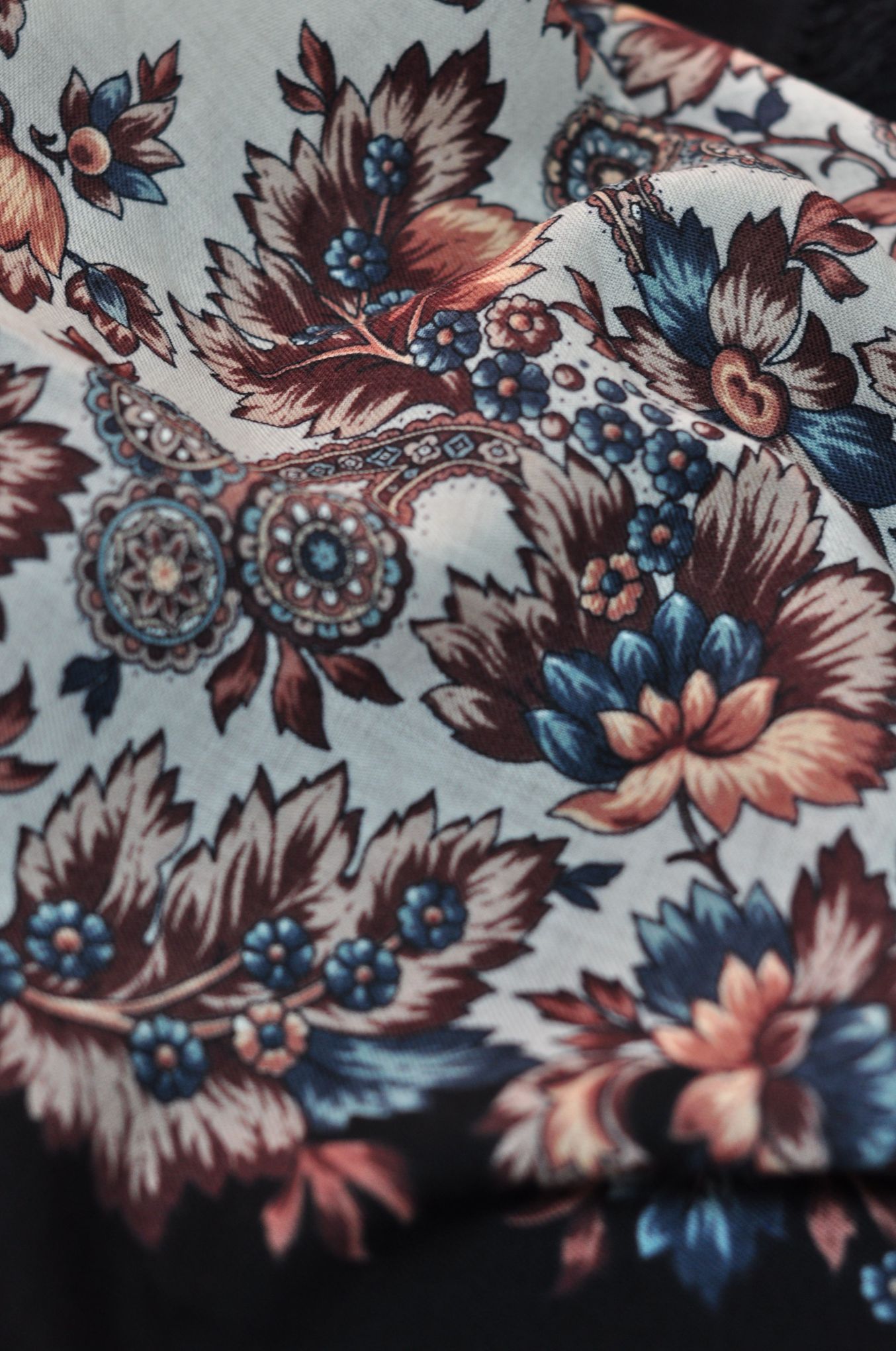 Милые форумчанки, представляю вашему вниманию завораживающий своей красотой и сдержанностью платок Инфанта, 89х89, рис. 723-18. Подробные детали наших фотографий возможно помогут определиться кому-то с выбором. На первой фотографии основной цвет платка я сравнила с листом белой бумаги (полоска с правой стороны