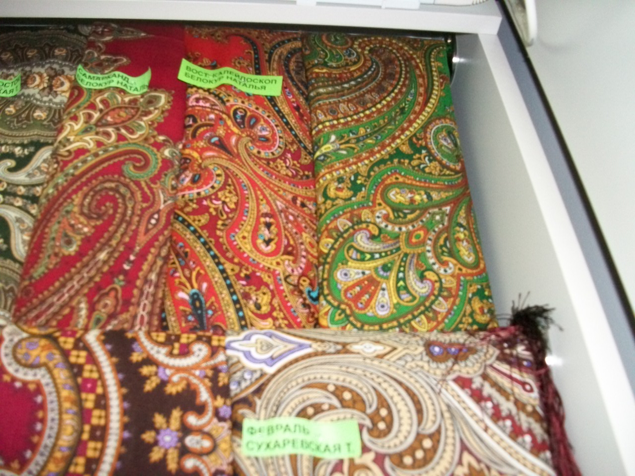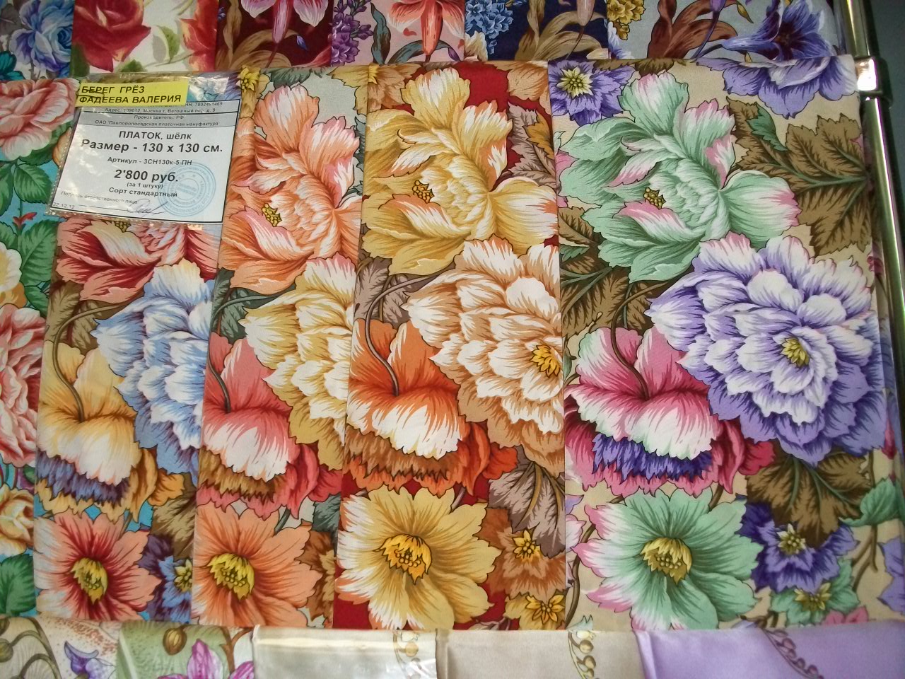 В магазине была Муза в четырёх колоритах, Берег грёз в четырёх колоритах и новый платок 125х125 в двух колоритах.