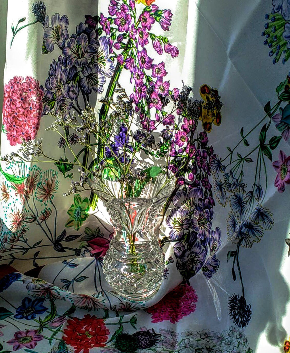 ГалIина, солнце в хрустале и изящные стебельки на платке и в вазе.
