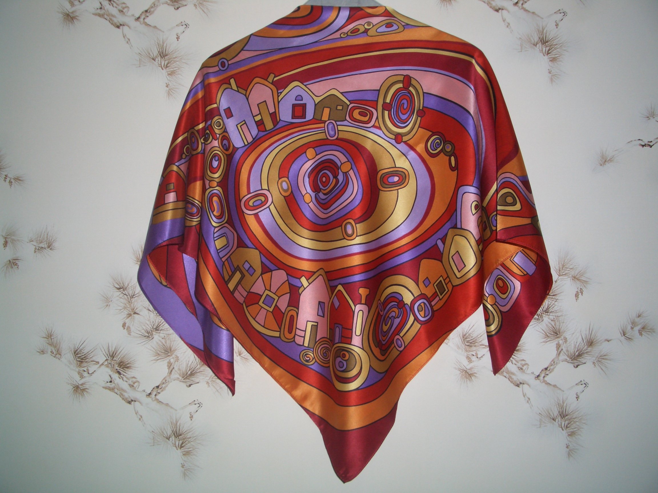Шёлковые шарфы - не мой формат, люблю, чтобы вокруг шеи было навёрнуто побольше, но рисунок и цвета завораживающе красивы.