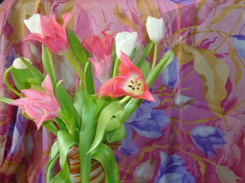 На чернопольных Розах и пионах тоже есть тюльпаны.