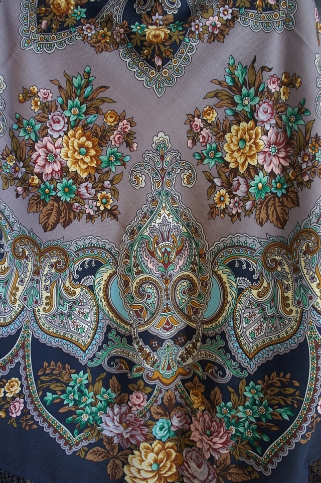 Но, конечно, о вкусах не спорят, мне просто не нравятся сизые, или а-ля-выгоревшая ткань, и опять таки оговорюсь, что многое зависит от освещения, один и тот же платок можно снять по разному, поэтому то и лучше смотреть всё в живую.