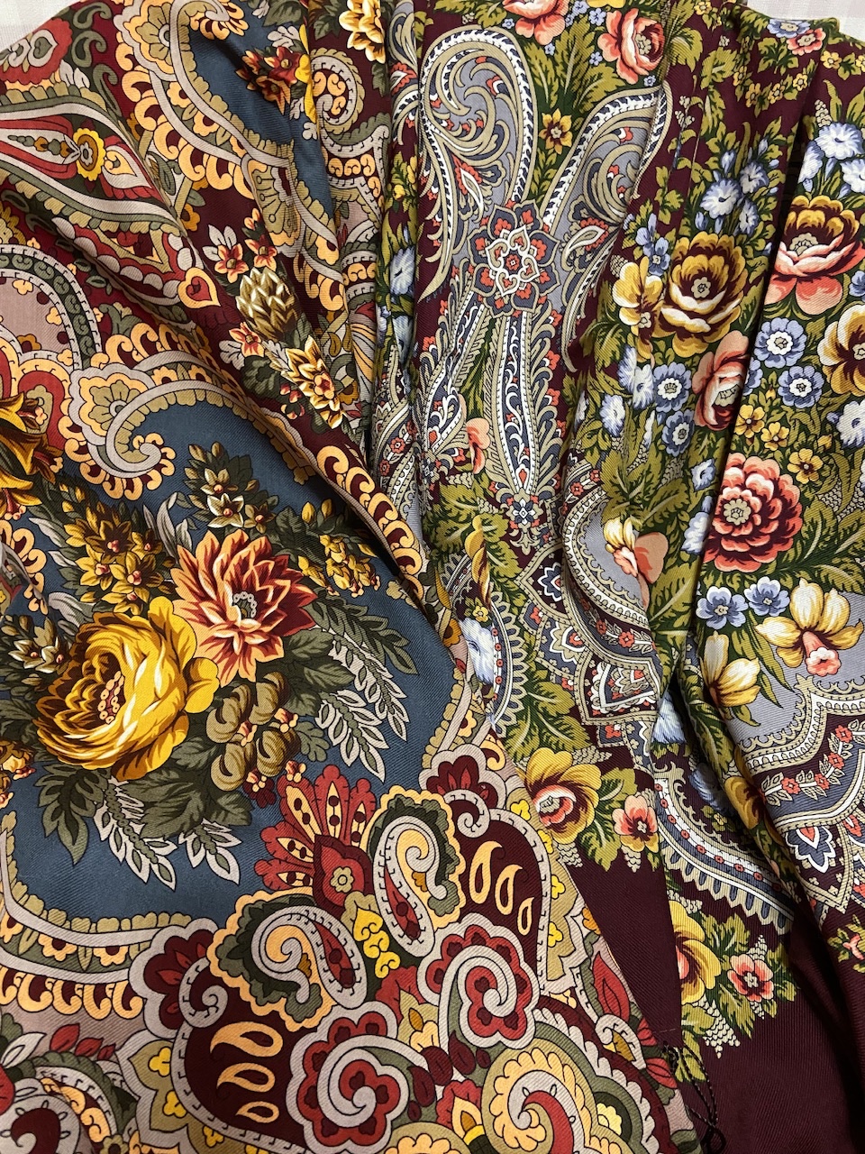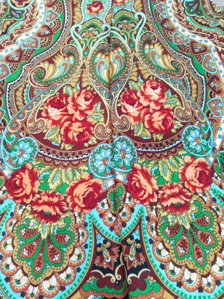 И ещё просто без фото, не успела, про Святочный... У него сильно увеличили шаблон, то есть раньше платок 125 см был 125 см из-за здоровенной каймы, которую я ходила обрезать в ателье, а сейчас каймы меньше, обрезать не надо, зато цветы стали больше размером.