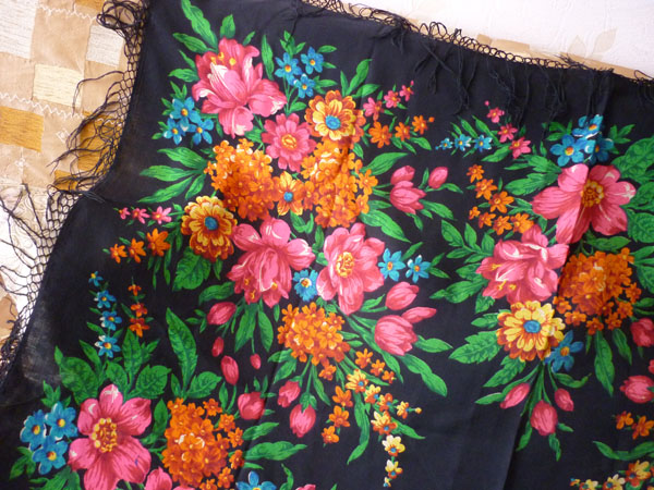 Здравствуйте! уезжала в отпуск и там много говорила о платочках со знакомыми. Одна дама долго жила в Туркмении, там и приобрела эти две красивущих шали. Очень хочется узнать, павловопосадские ли они. Покупались они лет 20 назад, а то и больше. прошу прощения за неглаженность, съемка была спонтанной.