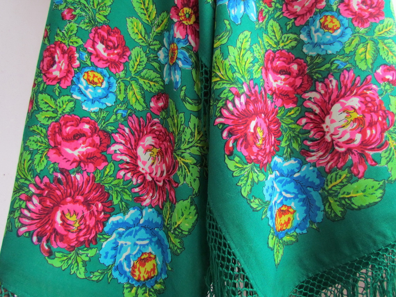 А вот то, что платки раскрывают всю свою красоту, когда их любишь, это вы совершенно верно подметили. Привезла я его в тесном целлофановом пакетике в совершенно замученном виде. Шутка ли - пролежать столько лет! На балконе подышал, расправился (для меня это мальчик) и распустились хризантемки. После утюжки с паром еще краше стал - розы загорелись ярко-красным и розовым родамином. Смотрю и диву даюсь: ну как можно ТАКУЮ красоту от народа скрывать?! А вообще он мне немножко елочку новогоднюю напоминает