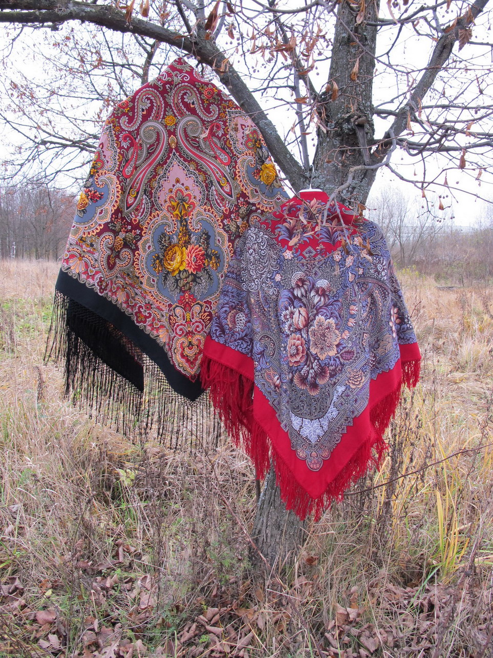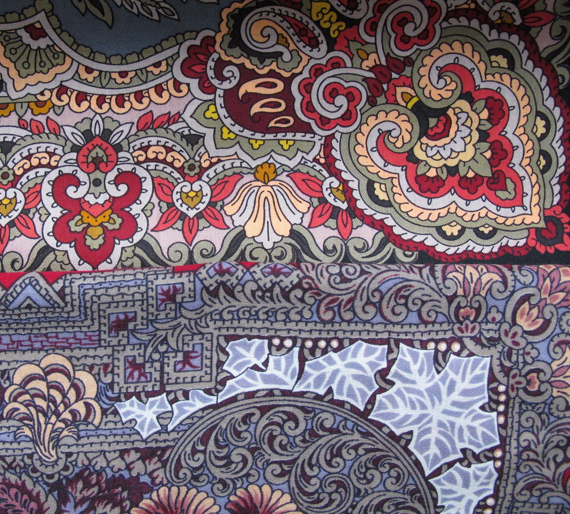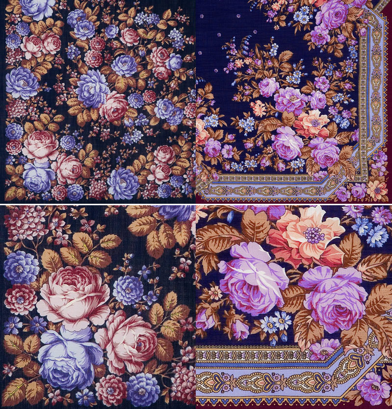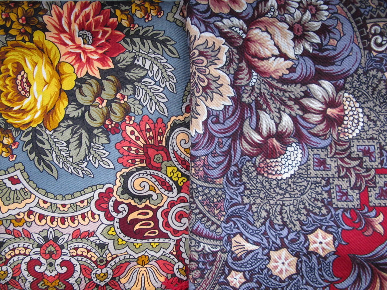 Раньше не обращала внимания, как много общего у этих платков, хотя весовая категория разная. И насколько заметно, что один и тот же автор.