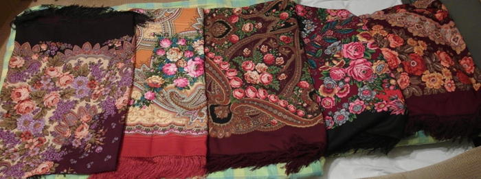У меня есть несколько таких же платочков. Конечно же, Цветет сирень -7, Казачка и Молитва( но они в других колоритах), Сон бабочки рыженький, Черные глаза, Душевный разговор и Звонница( в других колоритах)