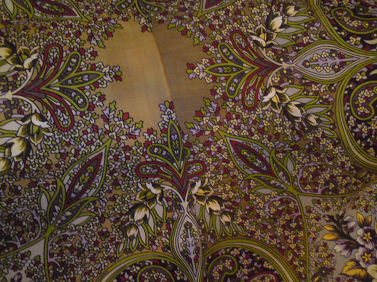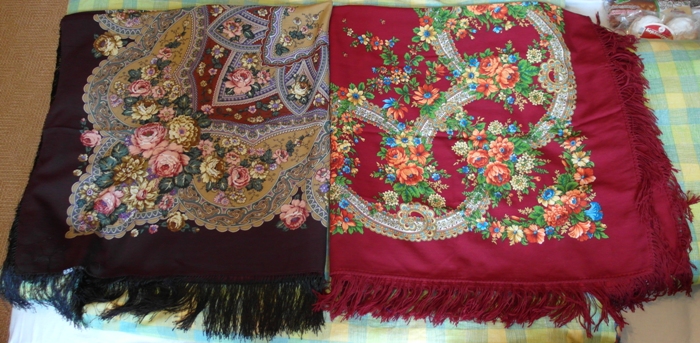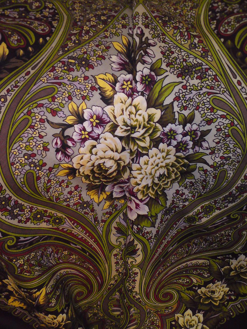 У меня синий Русский танец - когда лежит перед тобой - один, а как накинешь на себя, то узор и цветы на однотонном фоне смотрятся еще более живыми и выразительными.