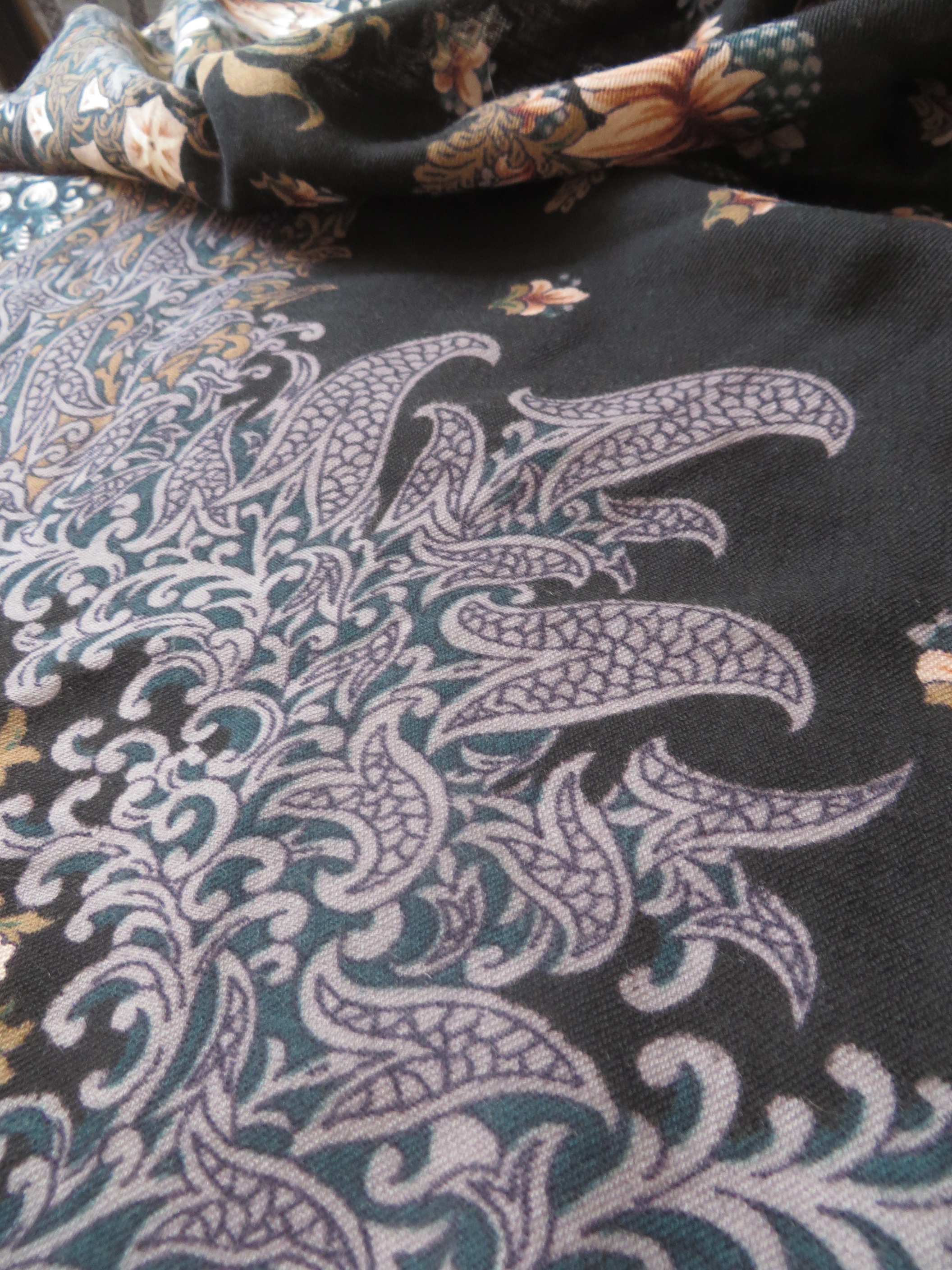 Шаль завораживающая. Я недавно видела женщину в метро, на простую куртку накинута Бархатная ночь этого же колорита. Я так смотрела на неё, что её спутница стала шептать ей в ухо и тянуть в другую часть вагона. Действительно, рисунок просто поражает.