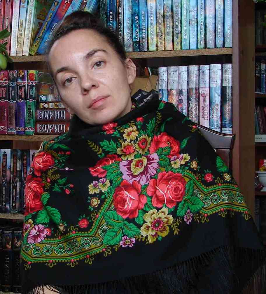 Так ведь как намотать... Святочный по-разному выглядит. Сначала очень сильно мешала широкая черная кайма - она о-о-очень широкая была, при намотке весь рисунок прятался, оставалась только эта рамка. Я кайму уменьшила, стало лучше. Когда "слюнявчиком" повязываю, то почему-то сиреневый цветок вылезает, а я хочу красные розы к лицу, поэтому не просто "завязала и пошла", а стараюсь правильно его завернуть, что требует дополнительного времени и усилий.shostova.t писал(а):девочки, очень хочется посмотреть традиционные платки Святочный и Маков цвет (оба черные) в намотке. Как они выглядят?