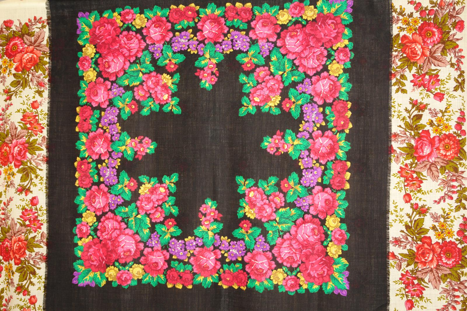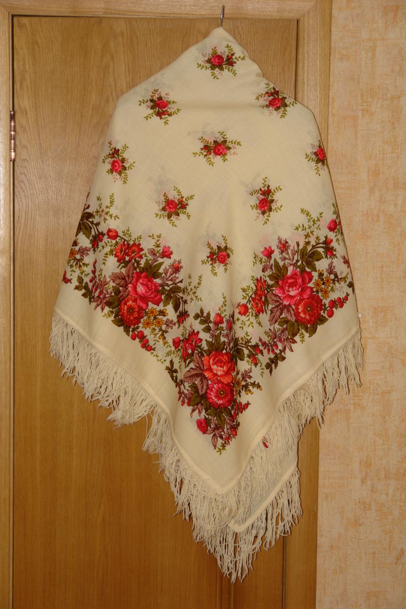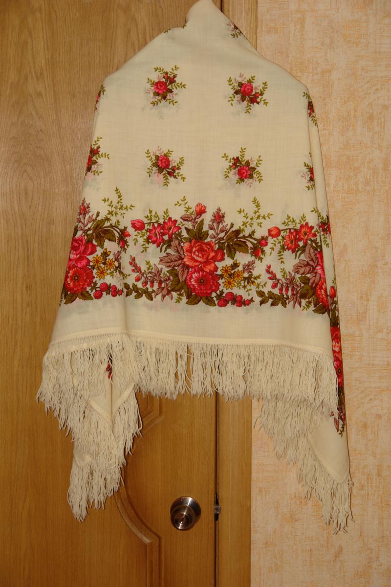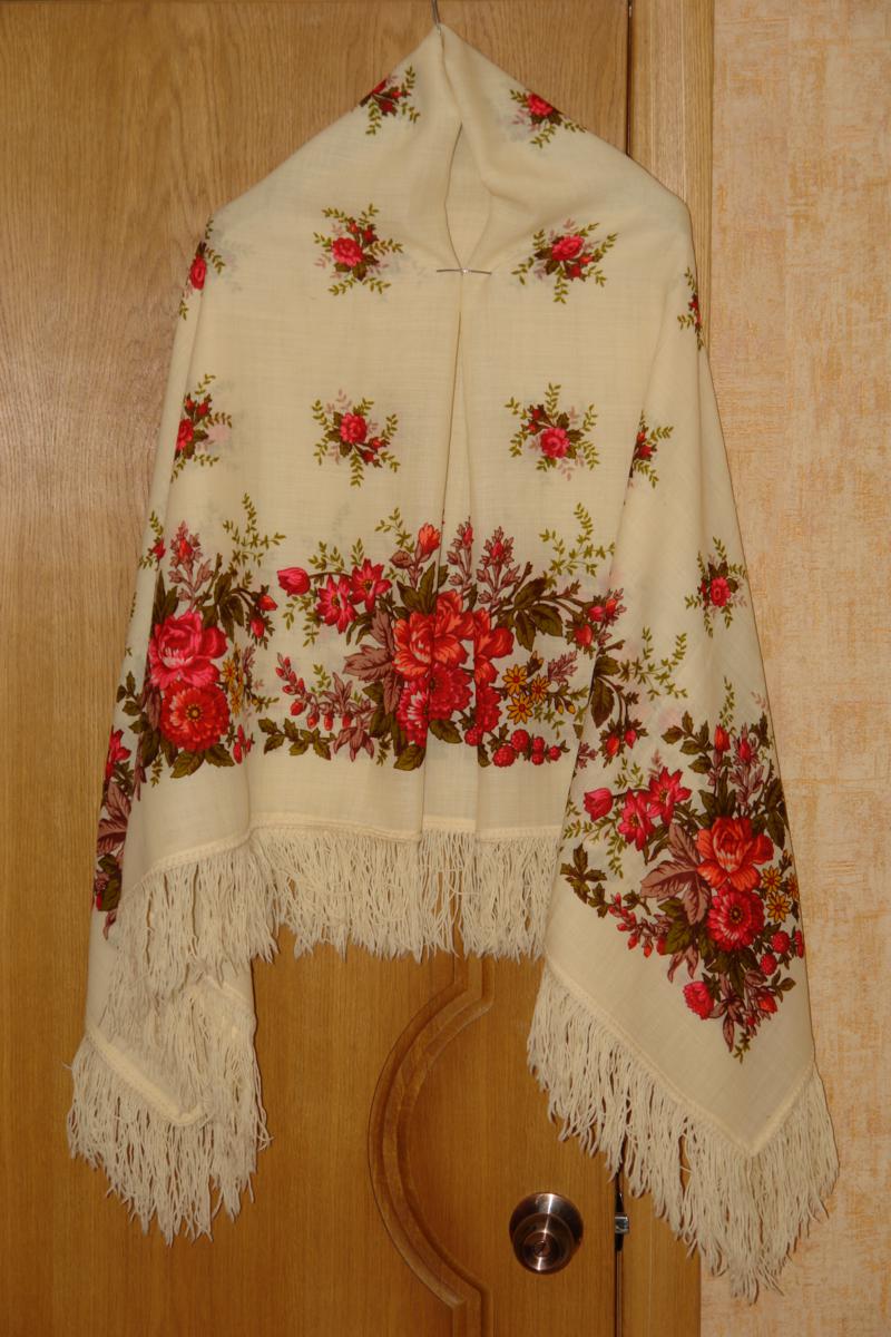 хочу поместить на опознавание вот такой платочек, куплен мужем в командировке лет 8-9 назад. Он точно Российский и из шерсти, размер 89х89. Вот фото: