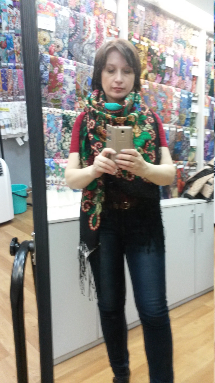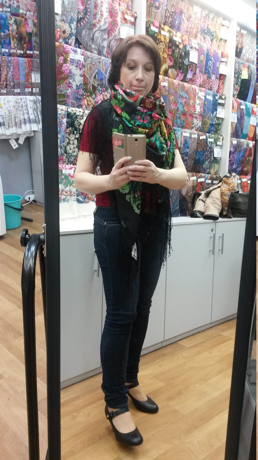 ALLA OK. ^% шали "крыльями" смотрите на фото выше, где я сняла их разложенными на витрине. На себе я крыльями не ношу. Мне и в чужих показах всегда важнее увидеть намотку, где что выглянет, где что проклюнется - это самое интересное для меня! А шаль в развороте я и просто так в магазине увидеть могу, на чужих плечах "баяном" ничего ж не меняется >< (мое глубокое имхо)