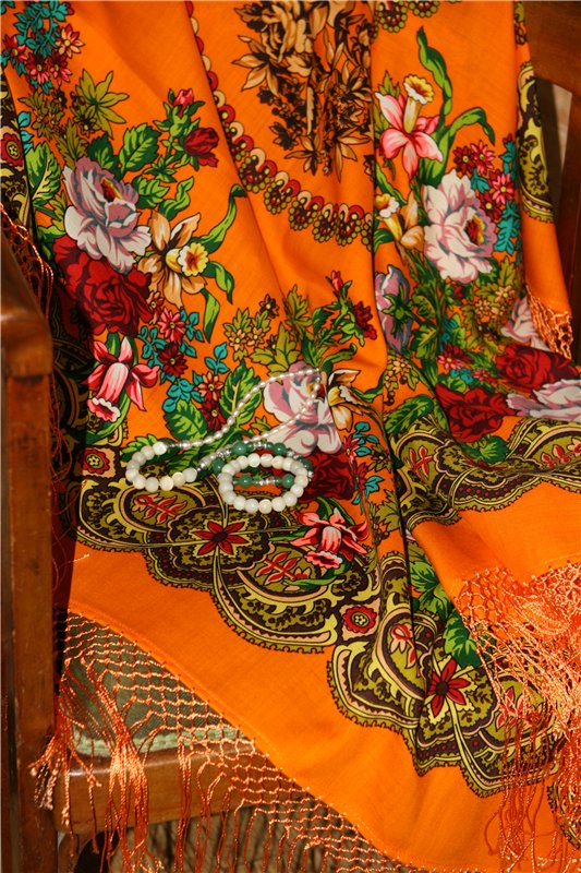 Колориты совершенно совпадают, абсолютно все цвета -из одних бочек. Но! У меня еще начинает возникать мысль: не является ли автором этой чудесной шали Ирина Петровна Дадонова ? Во-первых, я вижу сходство в прорисовке роз. Во-вторых, листва: прожилки, в том числе - центральные желтые (такие же еще и на Ежевике, Мелодии) и характерные контрастные розовые кончики листьев (Матрешка, Вензель, Мелодия, Весеннее Утро, Аромат Лета).