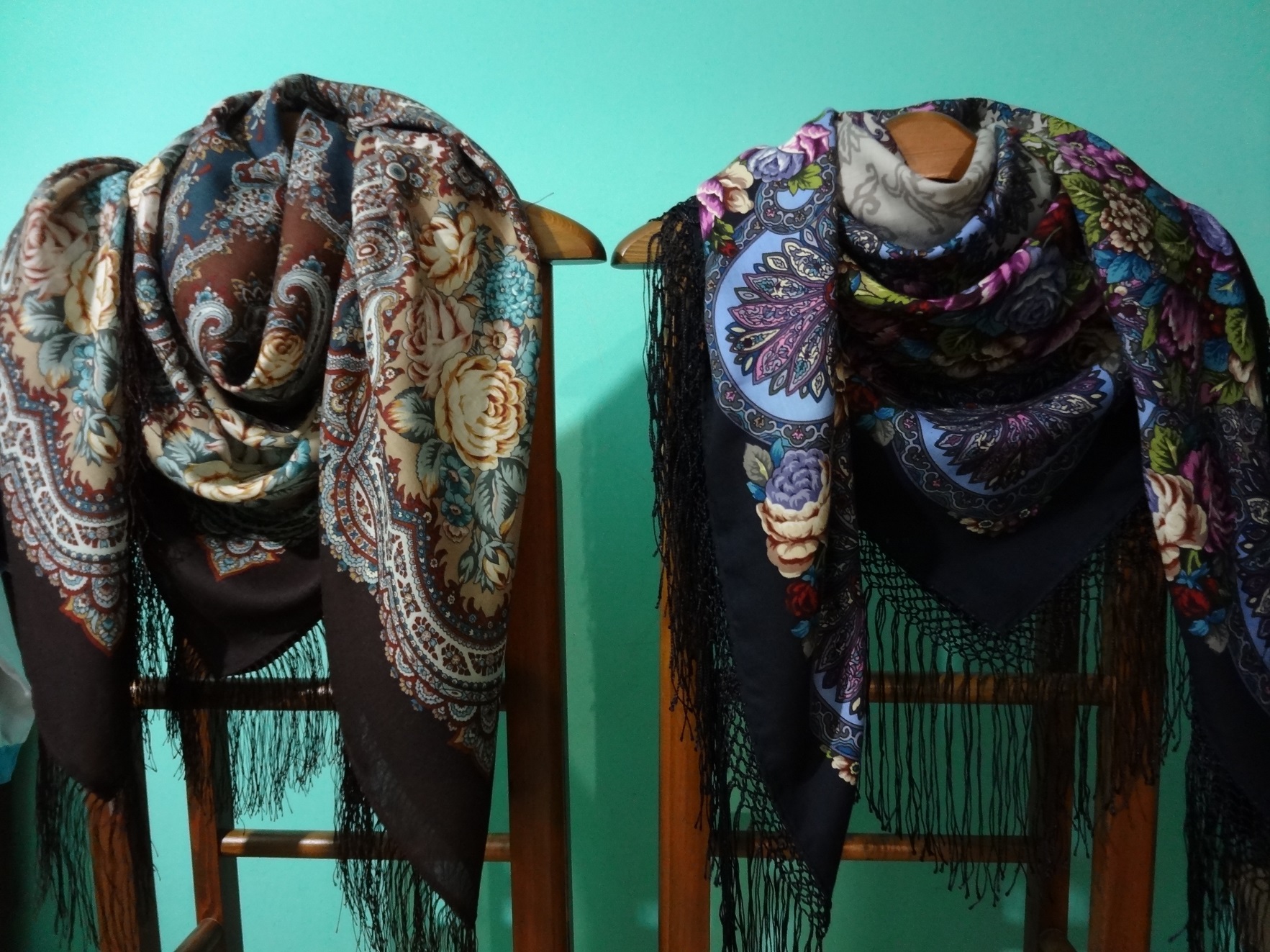 Испанское вино 17 и Праздник покрова 9 Эти два платочка для меня в " одной весовой категории". Оба спокойны, красивы, неповторимы, и оба, на мой взгляд, на одинаковой ткани.