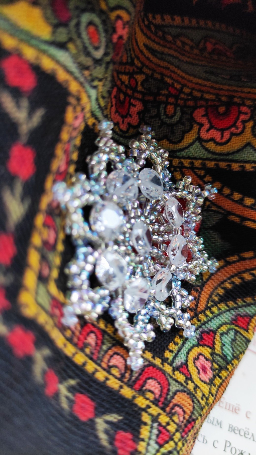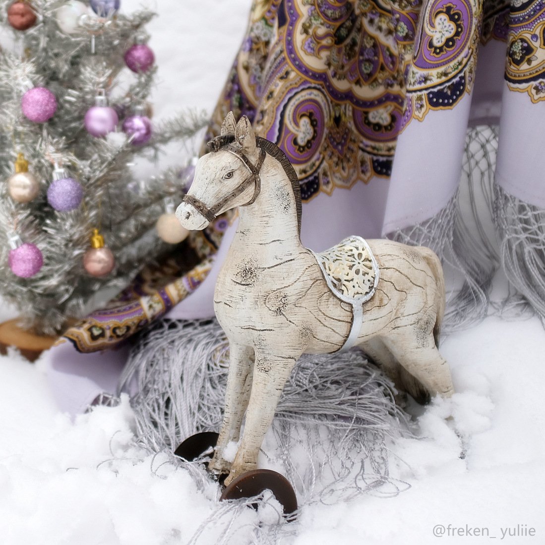 В декабре у меня была лошадка и красная шаль Женское счастье. В январе мне хочется делать композиции в светлых тонах, по этому, та же самая лошадка, и тоже Женское счастье, но жемчужного колорита.