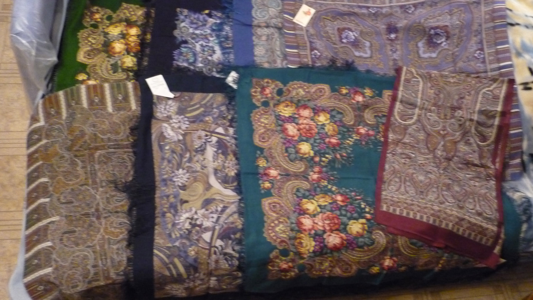 Но так как прибывшие платочки не все мои, решила сегодня пока все "на руках" сделать фотки такого раскошества на память