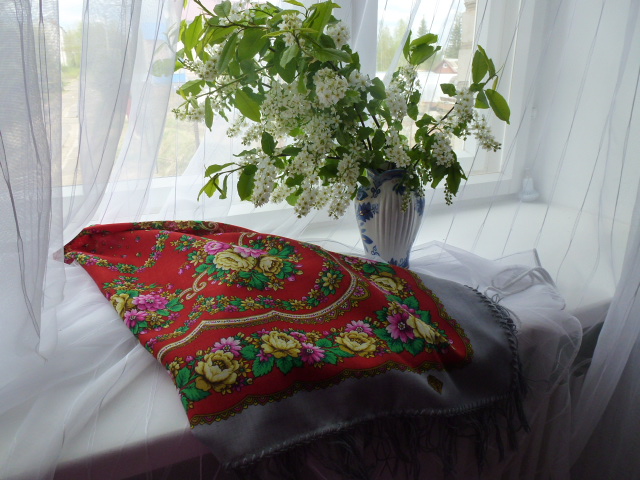 tryn-trava, платочек такой красивый. Разглядывала ярко-красные розы, цветки сирени в кисти и белые, и как-будто уже отцветшие. Цветочки все такие натуральные. Вживую не видела этот платок, но на ваших фото очень он мне понравился. (Кликните, чтобы почитать оффтопик)...