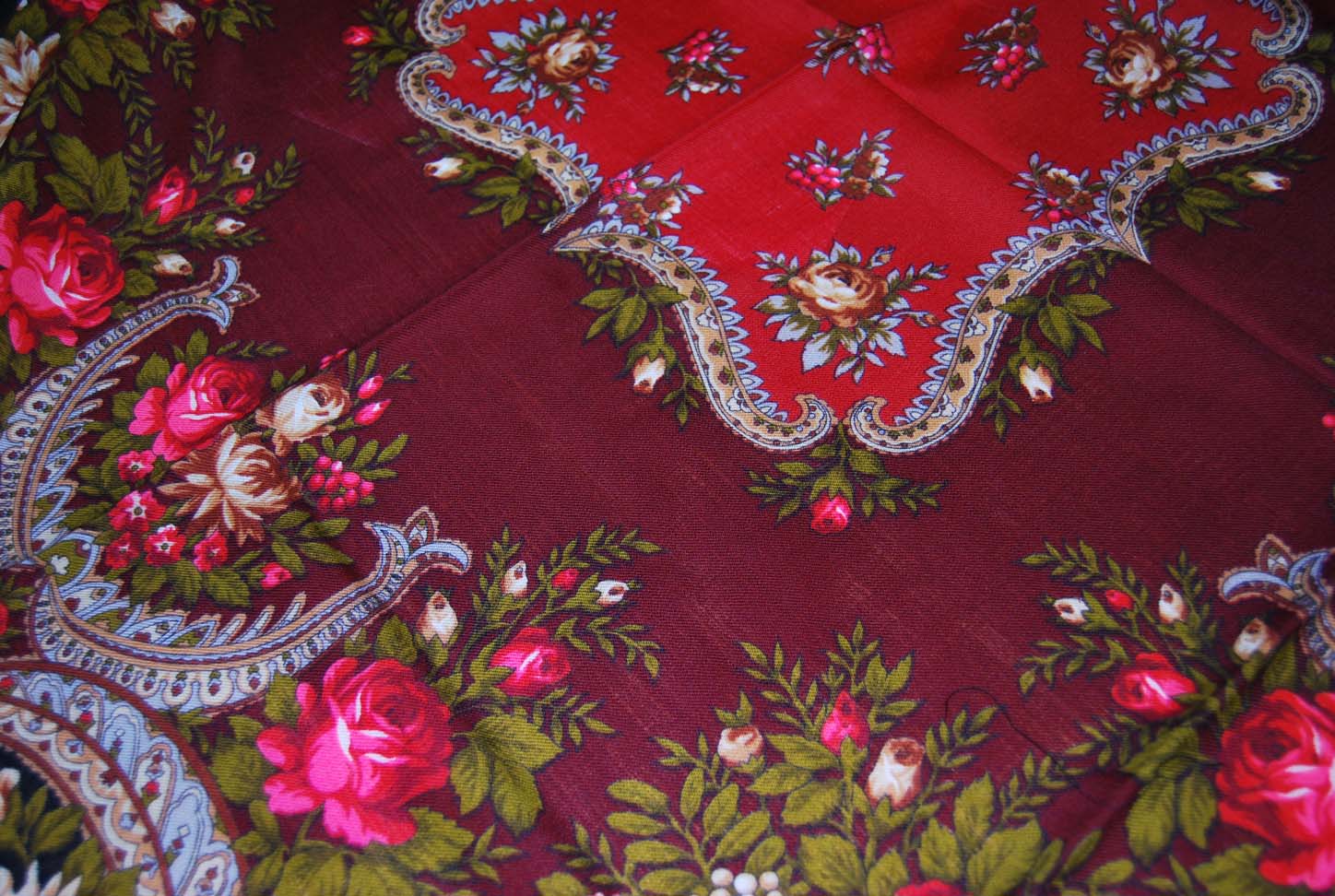 Вот на подобном платке грибочки и травки лесные были бы очень в тему. Фантазируем дальше: мышки, ёжики, белочки...