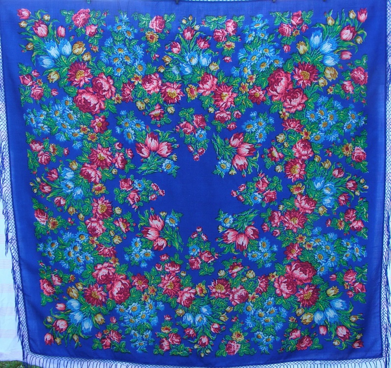 Невероятной красоты синяя шаль! Какие цвета! Какие цветы! ^Y
