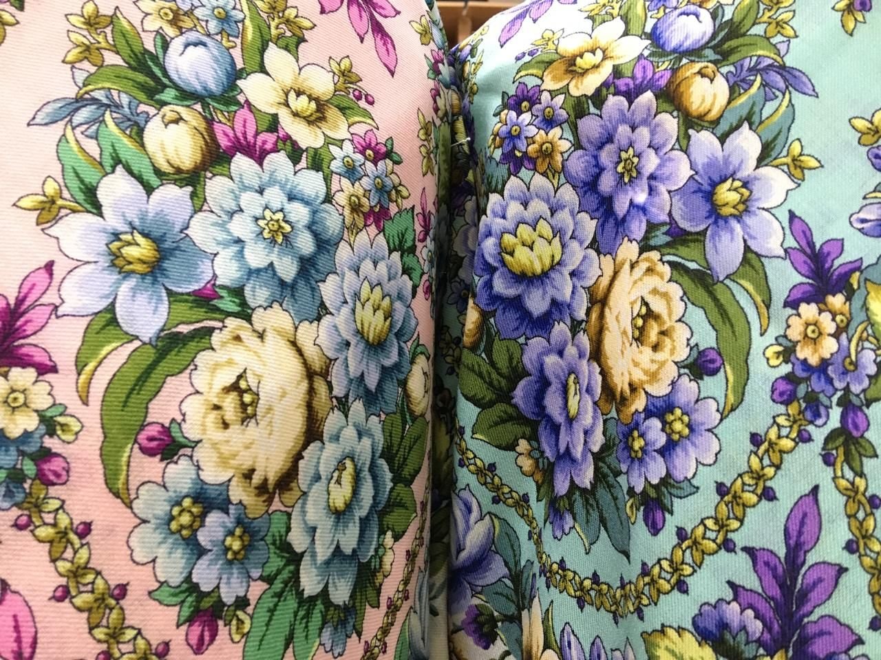 Сравнение печати на обычной платочной ткани с печатью на уплотнённой ткани двух близких по сюжету и колориту рисунков одного автора: