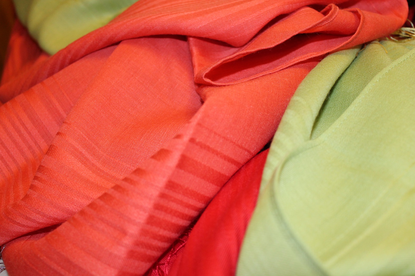 Принесла палантины. На первом фото со вспышкой салатовый правдоподобнее, в магазине есть ещё один светло-зеленый, более спокойный и менее яркий, очень красивый цвет, но я его не купила, глуховат для меня, похож как на втором фото, но чуть темнее. :)