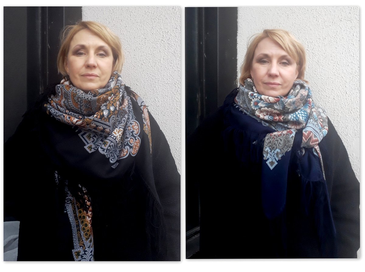 Один и тот же платок и камера. Верхнее фото - он явно идет в зелень, нижнее фото - зелени нет.