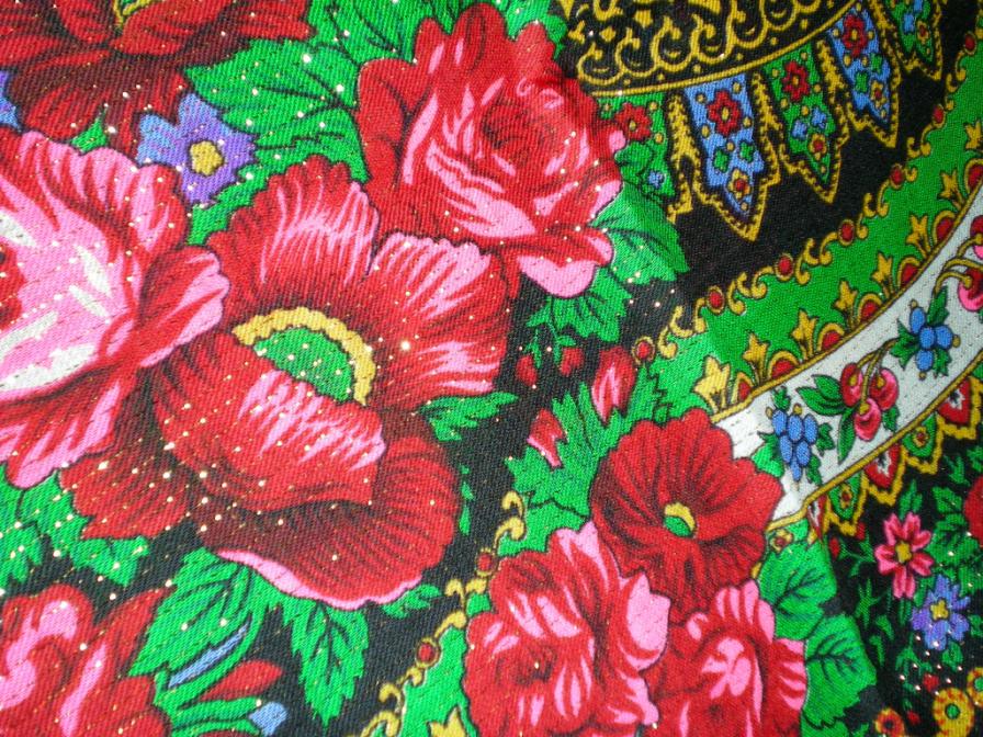 Argon, класс! Где Вы такую прелесть отыскали? Самое интересное, что так почти все мои одногруппницы в институте говорили, я даже не поправляла, настолько было массово. А не из тех ли это платков, которых было очень много в стране с середины 70-х годов? Они действительно шли за японские, помню, было 2 вида рисунков: цветы типа этих и "восточный". Были разные цвета: белые, красные, зеленые, черные, у мамы был синий восточный. Были с "рюлексом" и без. В Саратове их продавали только на барахолке, их, как и все тогда, "доставали". Я тогда про Павловопосадские не знала, а эти японские были у всех на виду. Правда, шерсть была не лучшего качества, тонкая, они довольно быстро затирались и теряли вид. Были и маленькие, порядка 90 на 90, с бахромой и без.