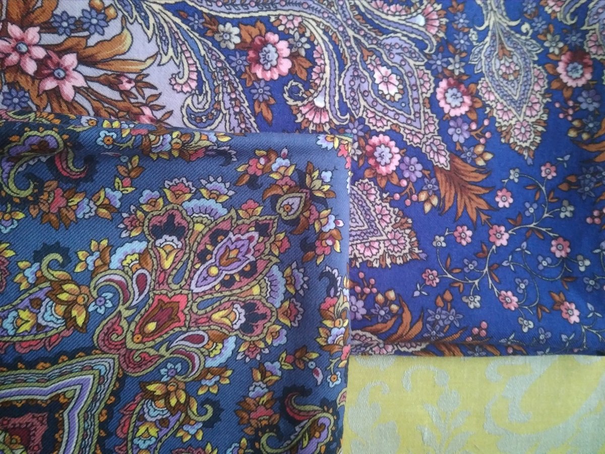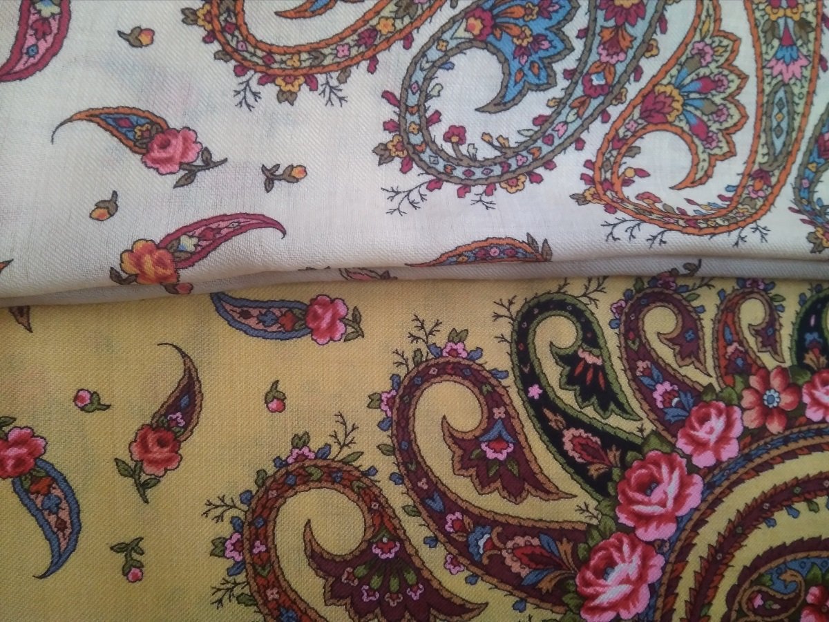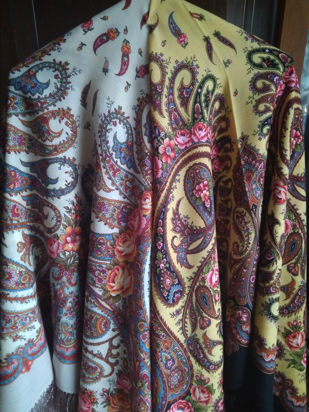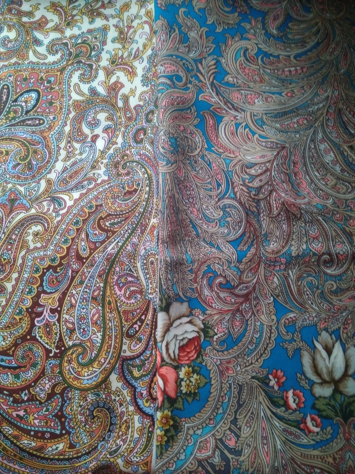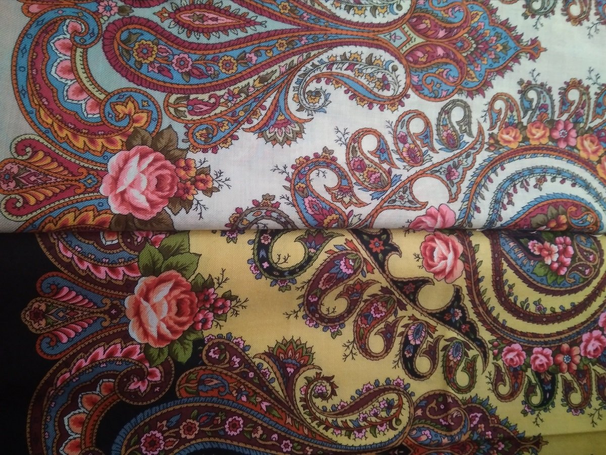 На фото получились как сквозь дымку, в реальности платки более яркие