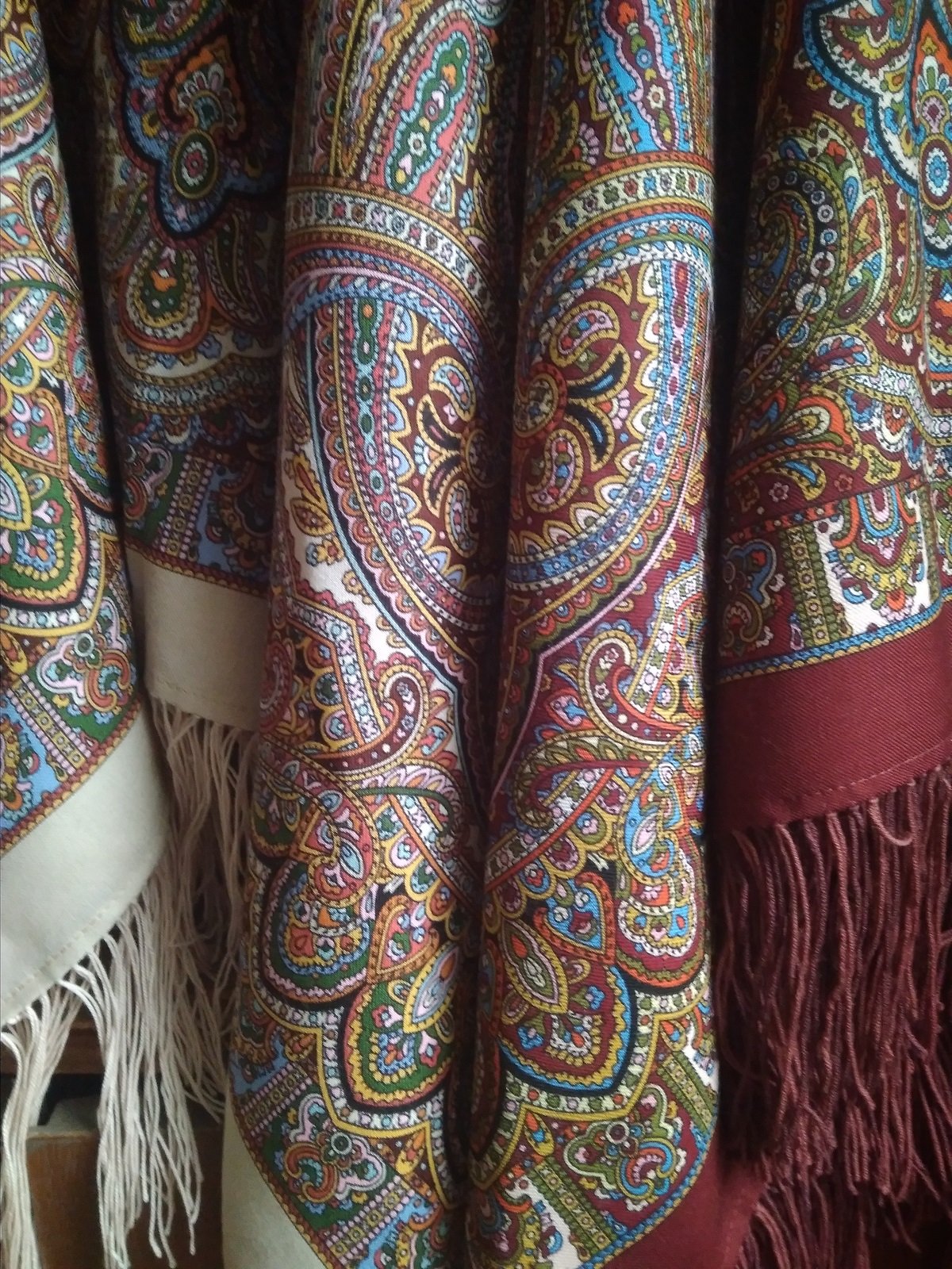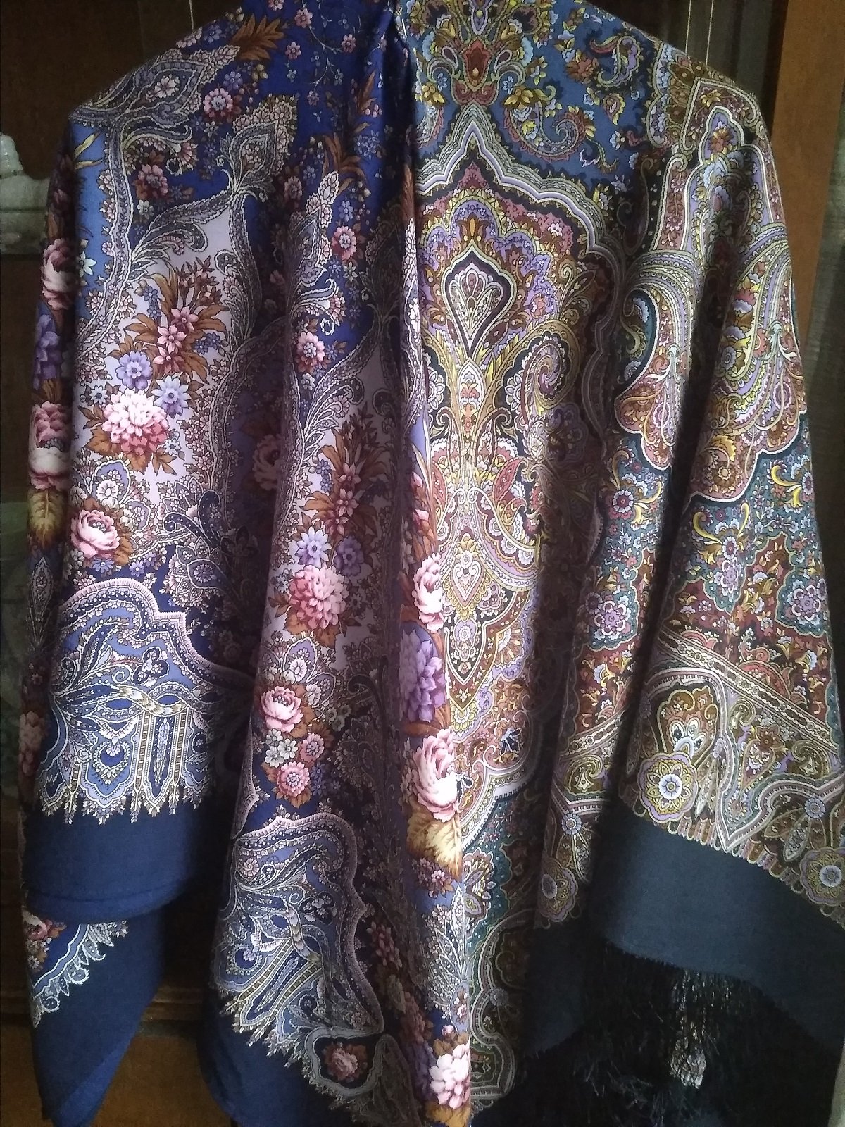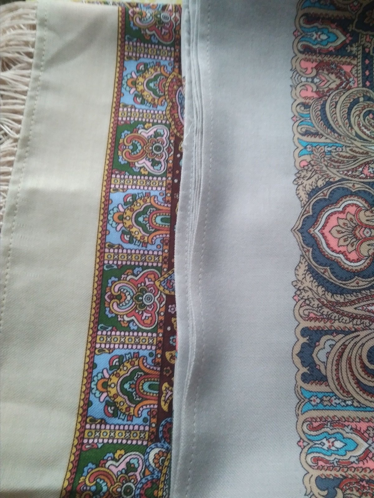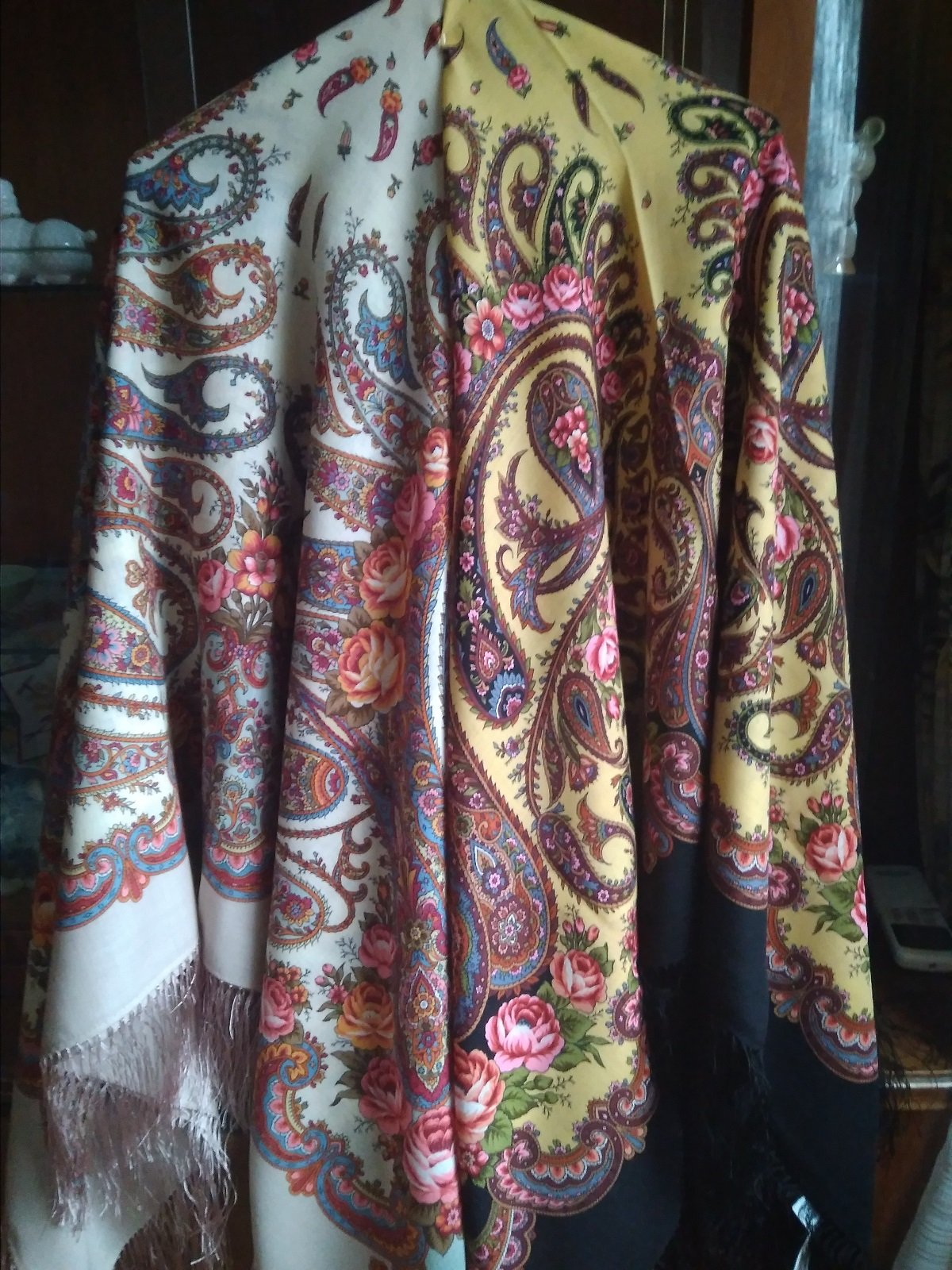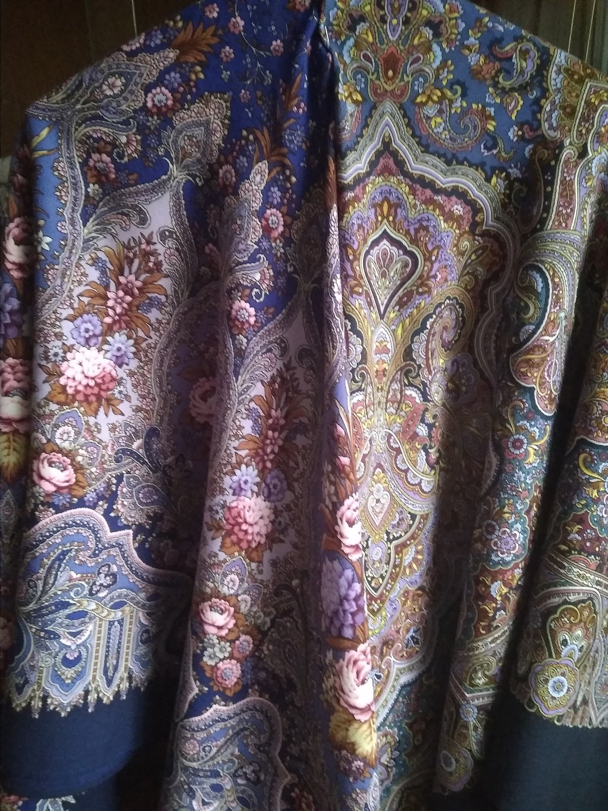 На фото получились как сквозь дымку, в реальности платки более яркие