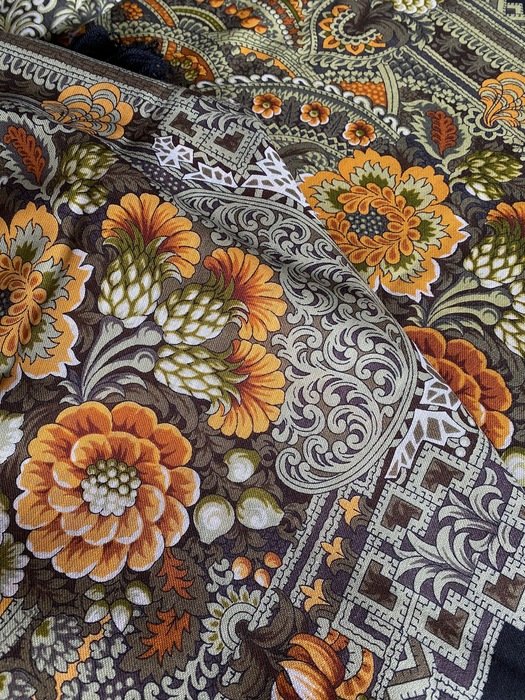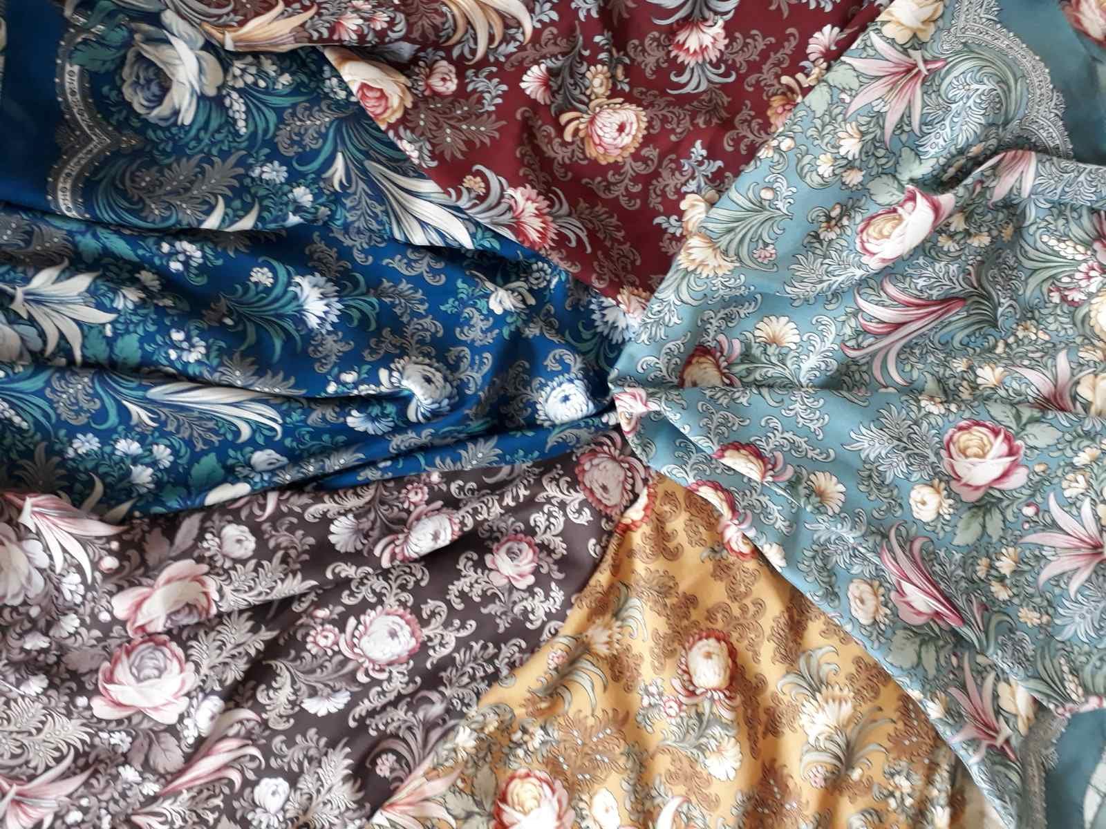 Такая разная печать Терема расписного-2. Впечатление, что фото сделаны при разном свете ( справа-электрический) , но это не так. Везде яркий дневной свет, это платки разные.
