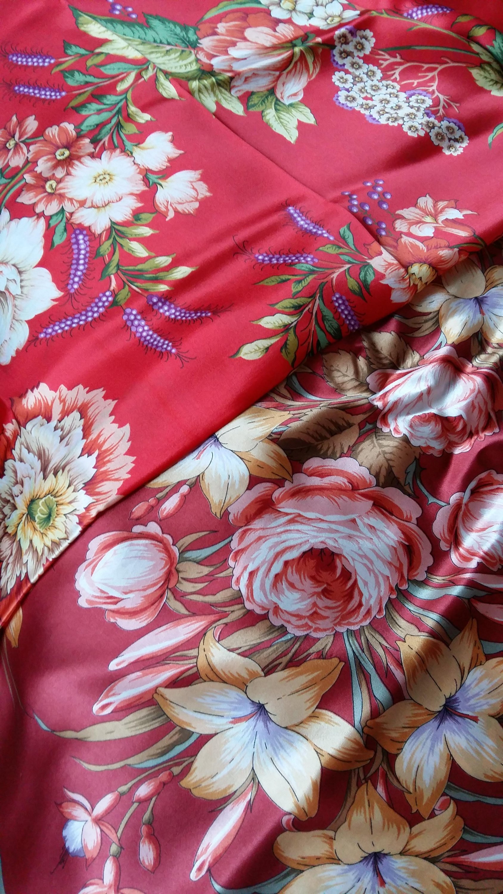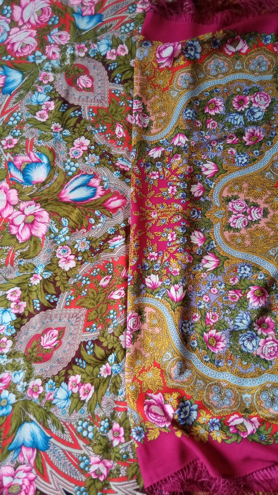Таня Имбирь, есть есть похожие цвета. Соседки бы сказали один и тоже платок. Но мы то знааааааеем, что Тот Федот, да не тот. Розы цвет одинаковый и голубые всплохи. Красота!