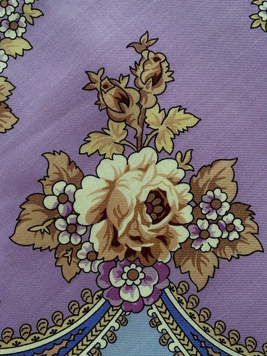 Цветы объемные, напоминают розы Дадоновой. Вот держу в руках шаль--вижу: розы коричневые--кофе с молоком без розовости, где коричневые тени--красноватый шоколад; самый светлый оттенок розового на цветах--прохладный, светлая, пыльная роза. Остальные цвета: различные оттенки баклажана ( темные и светлые), коричнево-красные-"вареная вишня"; бледные бежево-розовые (цвет пудры); разные по интенсивности цвета и насыщенности оттенки лилового; букетики по центру--это светлый, бежевый-розовато-желтый песок, без оттенка лимонного. Оттенки синего-чистые в основном, цвет каймы-очень темно-синий, наверное классический, без бирюзы. А, вот некоторые листики--сине-зеленые , светлые и есть совсем темные--как бирюза или синие тона хризоколлы. Как то так...