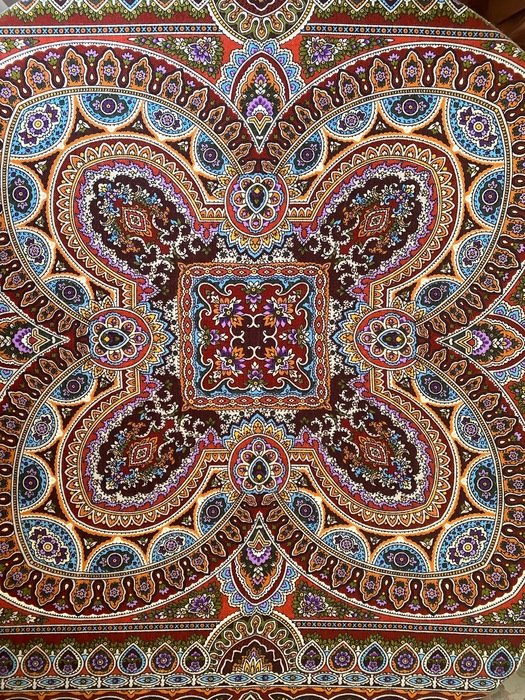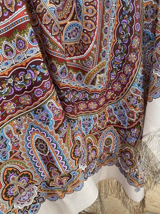 Логично. Терем - платок, чего уж там, "с бусиной в голове" (и стоит дороже), а, судя по всему, здесь уже такой идеальный микс бордо-вишни-экрю , т.е. сочетание теплых и холодных тонов (а это большой плюс), в общем можно успокоиться на этом.