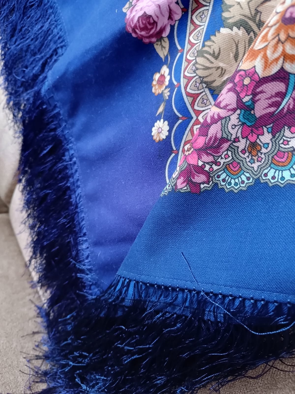 Получила еще одну стариночку Золотые листья 13/14(?) Клары Зиновьевой в идеальной сохранности с родной бахромой. Теперь есть оба мечтовых колорита 7 и синий.