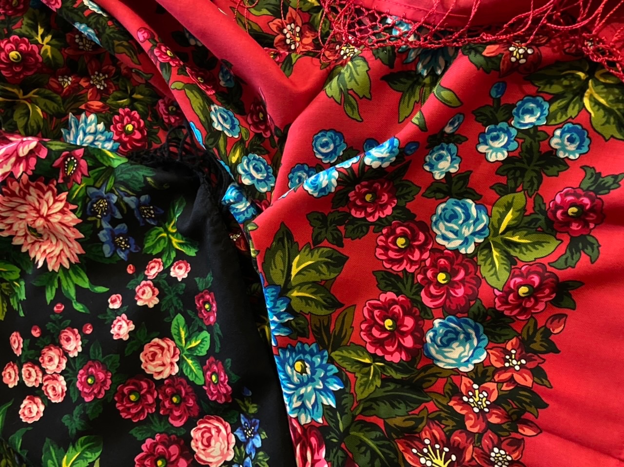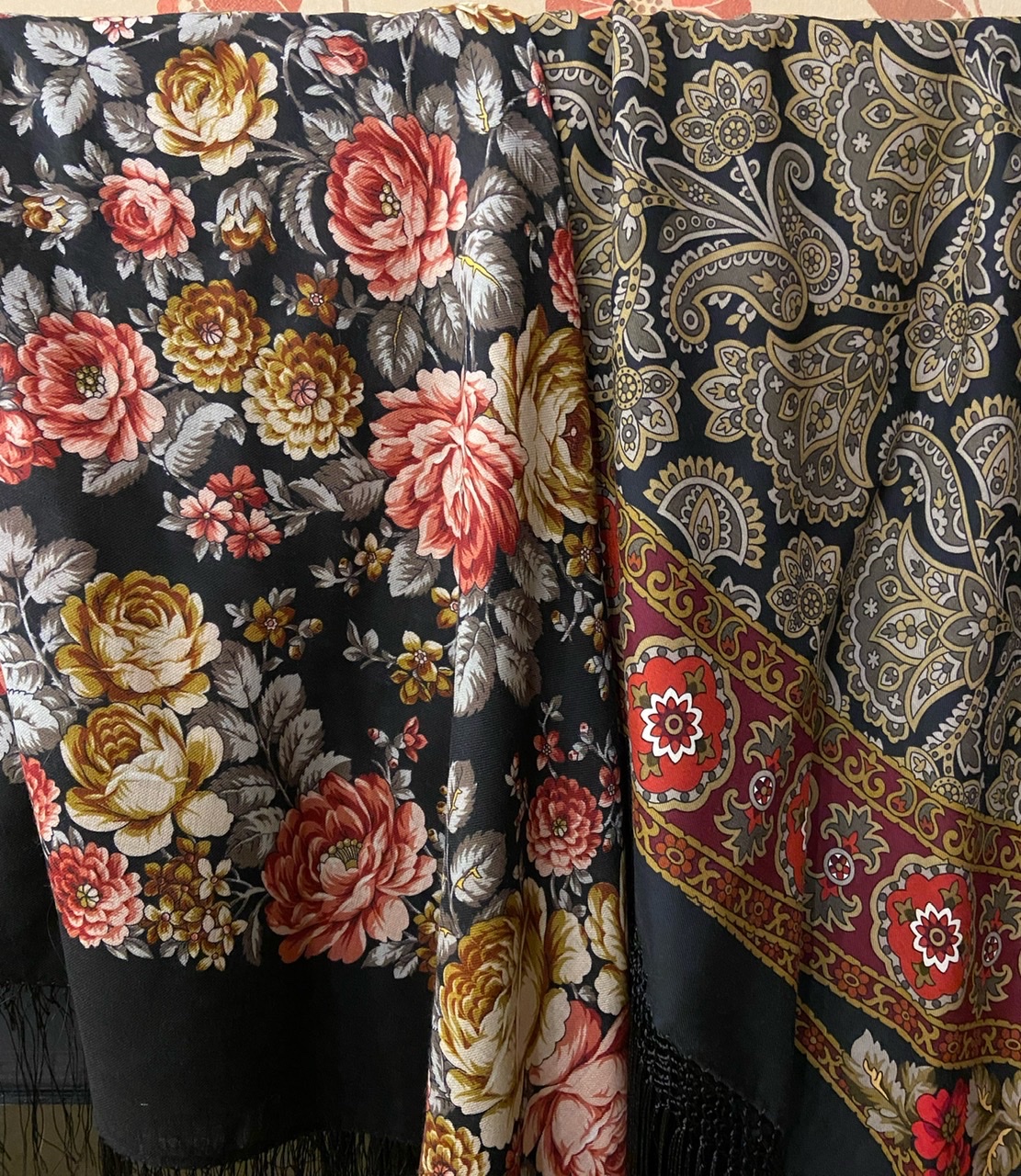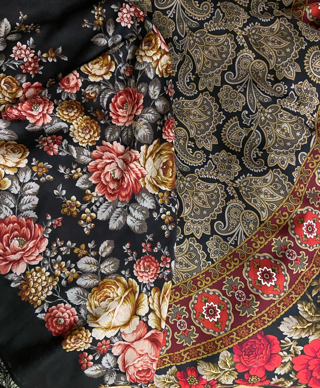 Сравнение шалей Свет мой, зеркальце 15 и Красавица 15. Зеркальце всегда слева.