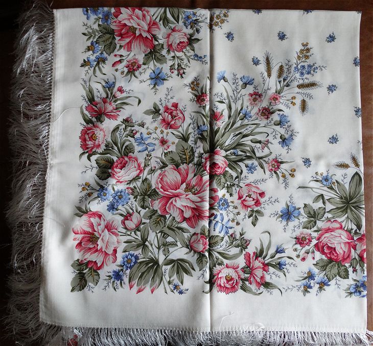 Потом, как сказать, чтобы не было слишком высокопарно, но пусть -- упала в объятья платка "Утренний сад-2" 135см волшебницы Клары Зиновьевой. Ткань шелковистая, особенная (поэтому и стоит подороже). Фон тёплый (вспомнились мода и фильмы 50гг.), ближе к цвету топлёного молока. Рисунок тонкий, изящный. Глядеть на него -- сердце щемит, но так сладко-сладко! Если и не часто буду носить, то иногда -- непременно.
