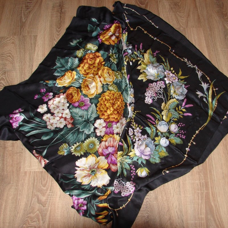 Буквально месяц назад наша платочная подруга из Уфы купила мне такой Итальянский полдень 19, им неожиданно завезли из каких-то старых запасов, ещё с прямой строчкой подгибки. Очень он красив, конечно :)