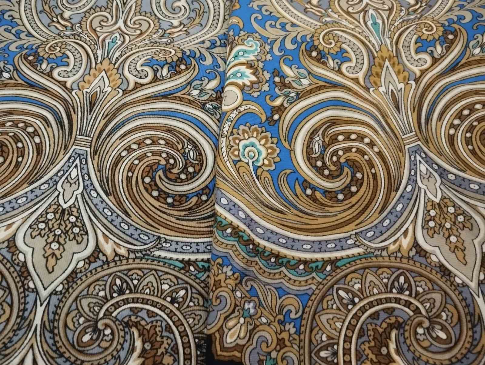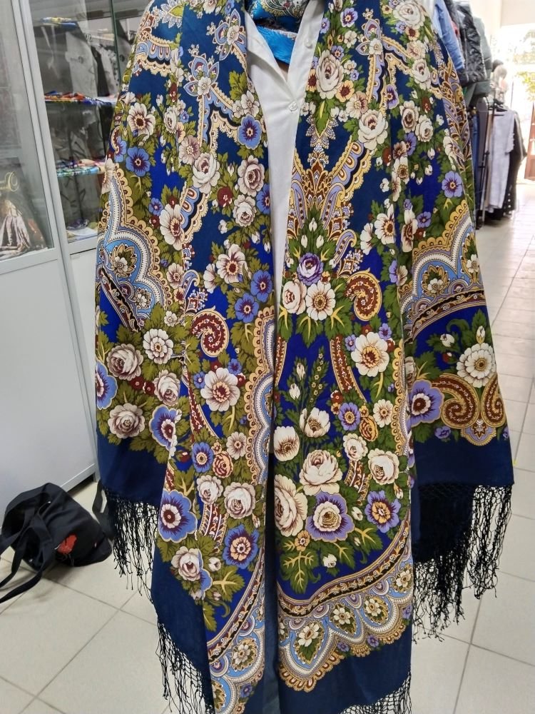 Вот эти зеленовато-желтые линии на мне очень активны Пожалуй, этот васильковый - это единственный синий, который я вижу на платке, но на мне он прятался.