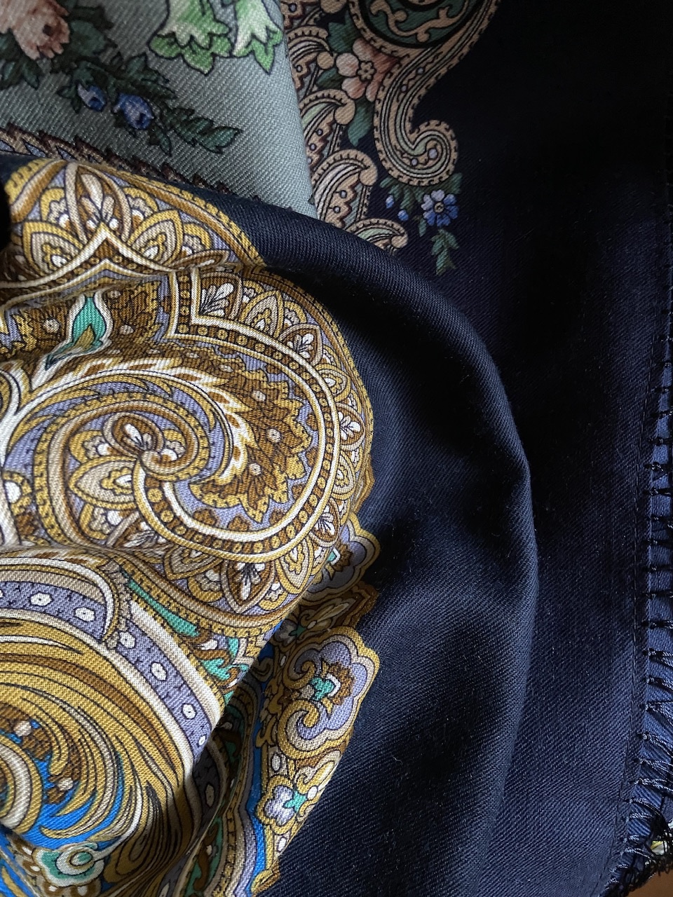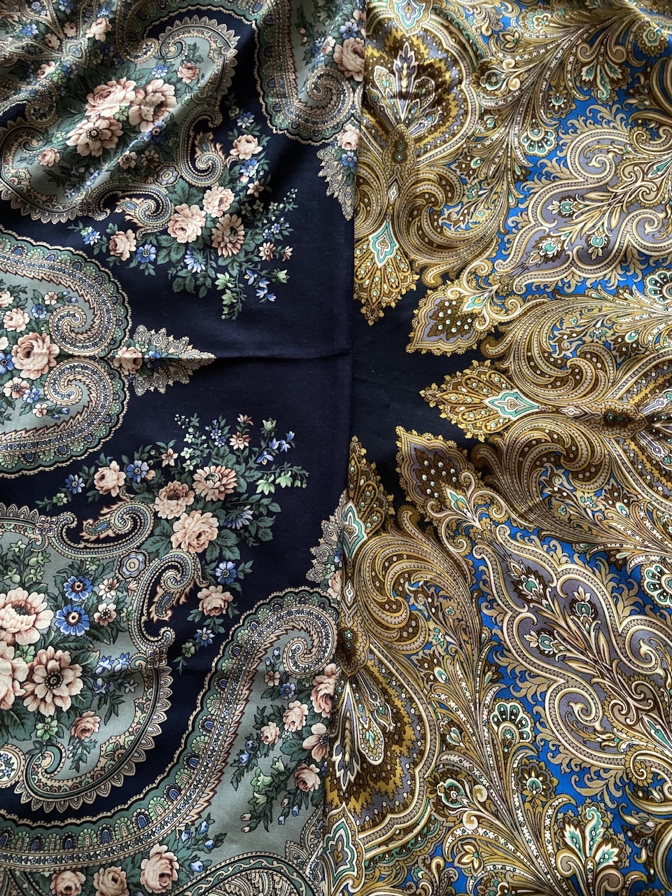 Майя 27 и У камина 15. Для меня шали- компаньоны. Издалека больше общего, чем вблизи. Фото дома, не идеальная цветопередача, конечно. Схожи по настроению очень.